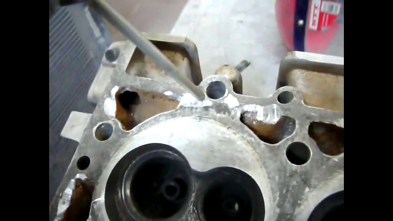 1. Ремонт ГБЦ - заполнение алюминием неровностей, трещин, сколов.